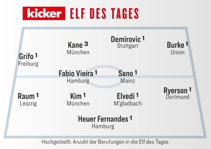 "Kickers" đã công bố đội tốt nhất trong vòng Bundesliga này, dẫn đầu bởi Kane và Kim Min-Jae.